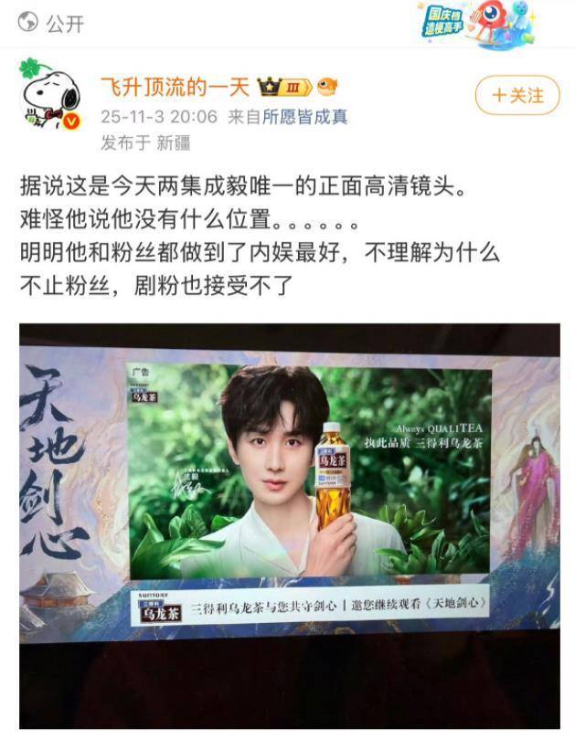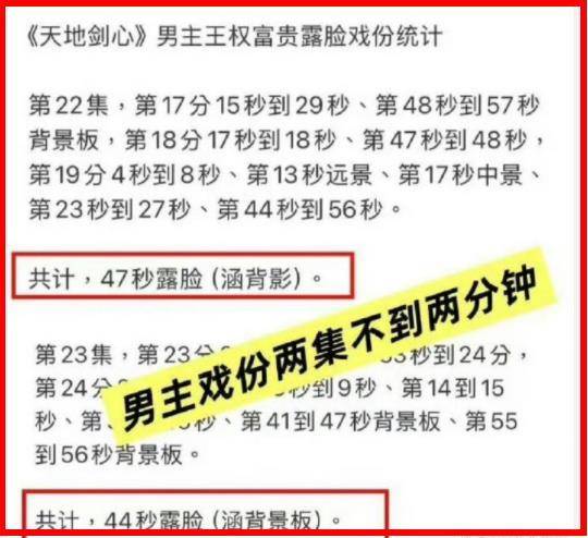 《天地剑心》开播前,制片人王一栩团队大力宣传,以成毅饰演的“王权富贵”为核心卖点,吸引了三得利等品牌的合作。观众们冲着成毅的演技和“一番大男主”的承诺,满怀期待地追剧。然而,当剧情推进到22-23集时,成毅的镜头骤减,单集有效镜头不足2分钟,多为虚化、远景或背景板,甚至有剧集仅97秒露脸。这种做法瞬间点燃了观众的怒火。粉丝们统计发现,20集后成毅的戏份普遍低于1分钟,质疑声铺天盖地:“前期用成毅引流,后期却弱化他的角色,这不是欺诈吗?”