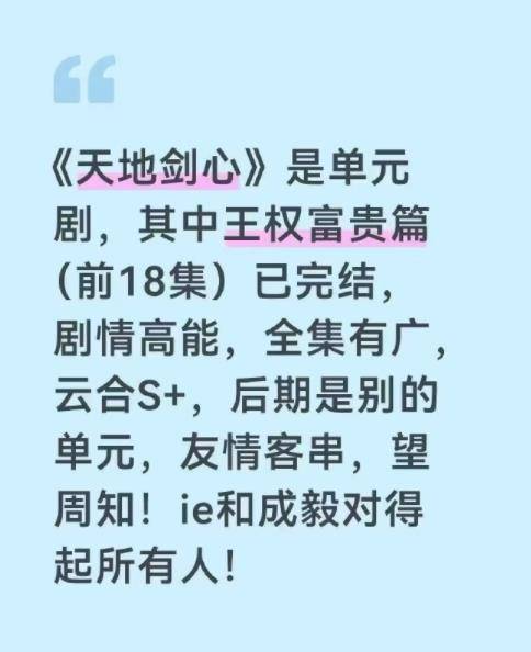 这场风波的影响远不止于一部剧的成败。它倒逼制作方反思创作诚意,观众们呼吁“尊重演员付出与IP内核”,强调影视作品应以内容为核心,而非投机取巧。对于成毅而言,粉丝们已转向支持其主演的《赴山海》《莲花楼》等男主中心向作品,希望他能遇到更靠谱的团队,继续用演技证明自己。“回冷宫”的喧嚣本质上是行业对“创作初心”的集体呼唤——只有回归内容、尊重观众,才能赢得长久的认可。