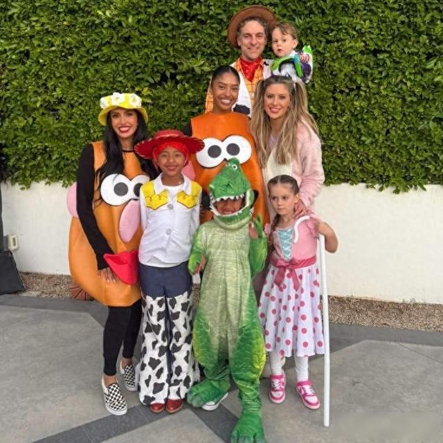 傍晚刷手机时,看到瓦妮莎发布了一张全家福。照片中,她和三个孩子都穿着蜘蛛侠的万圣节服装,小女儿披着粉色斗篷坐在中间。令人惊喜的是,加索尔夫妇也带着孩子出现在照片里。想起多年前科比在湖人队时,保罗·加索尔总是被球迷戏称为科比的抱摔对象,没想到现在两家关系依旧亲密。