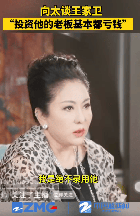 向太说自己绝不录用王家卫 因为他不受控制 • 2025-11-06 10:15:30 • 娱乐 • 来源: 搜狐 • 阅读: 7 向太在直播间谈到导演王家卫近日争议传闻,表示:“向太说投资王家卫的老板基本都亏钱,我绝不录用王家卫,因为他不受控。王家卫没有张叔平是个屁,拍电影就是靠烧钱。”责任编辑:李劲 CK005