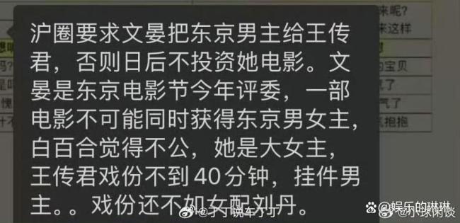 网传《春树》是“大女主电影”,白百何戏份占比70%以上,而王传君仅约40分钟,引发“镶边男主压番女主”的质疑。匿名爆料称资方施压中国籍评委文晏,要求将影帝授予王传君。组委会已否认干预,强调评选基于艺术标准独立进行。