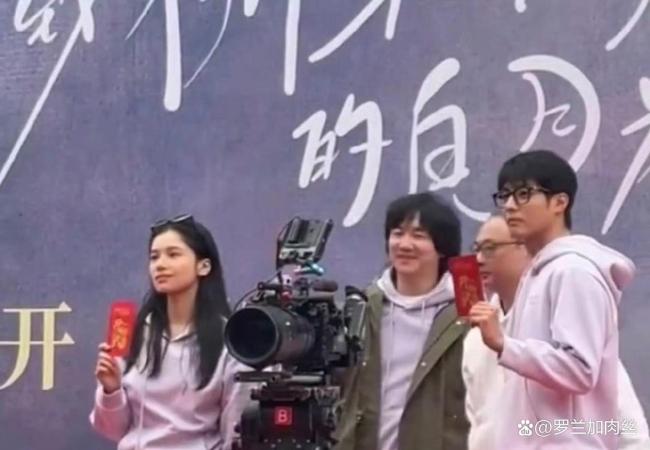 剧组还准备了传统的红包环节,张婧仪和陈靖可手拿红包合影,为开机仪式增添了喜庆氛围。现场工作人员也纷纷加入合照,整个团队显得团结而充满活力。
