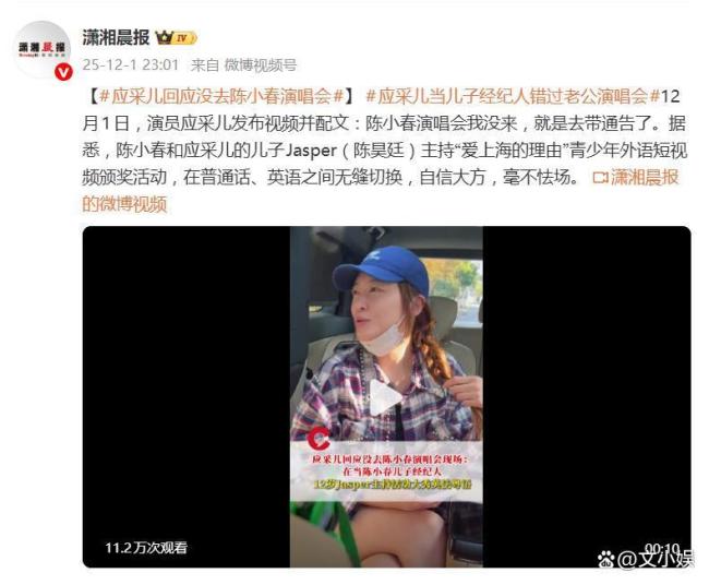 应采儿回应没去陈小春演唱会 舍夫陪子秀幸福!12月1日,演员应采儿发布了一条视频,回应了“缺席老公演唱会”的话题。视频中她并没有去给陈小春捧场,而是在忙前忙后,配文解释说:“就是去带通告了。”原来,她是去为儿子Jasper(陈昊廷)担任全职经纪人。